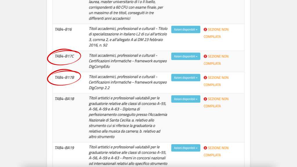 Titoli ulteriori → Titoli culturali → Certificazioni informatiche